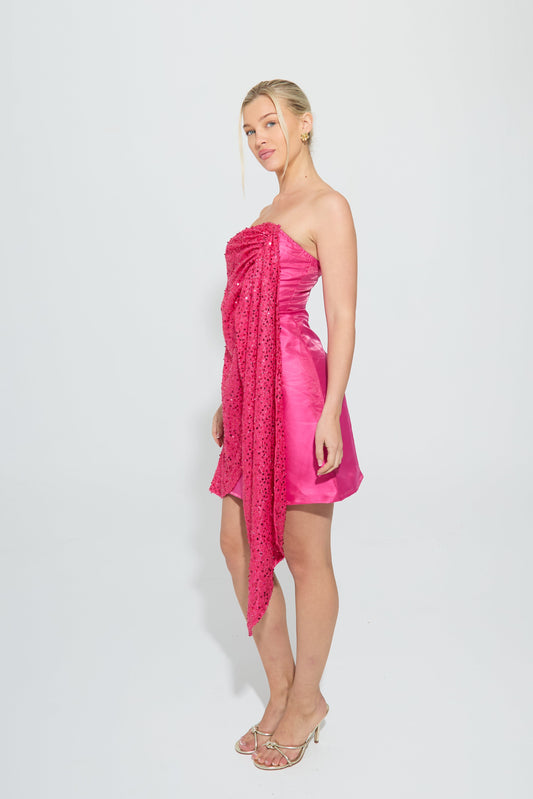 SABRINA PINK SEQUIN MINI DRAPE DRESS