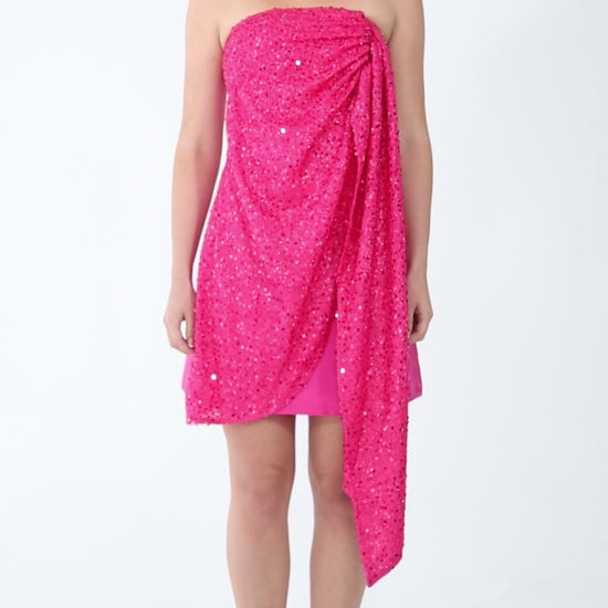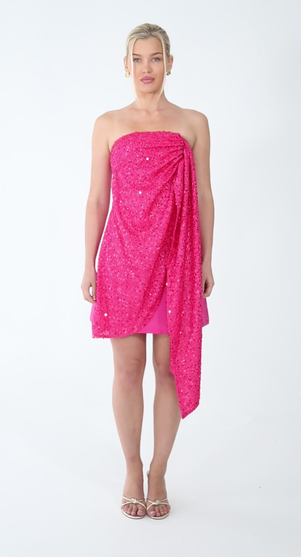 SABRINA PINK SEQUIN MINI DRAPE DRESS